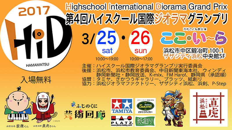 ハイスクール国際ジオラマグランプリ(通称 HiD・ヒッド)は全国の高校生チームの手によるオリジナルのジオラマ作品を、ものづくりのメッカ静岡県浜松市に集め、その想像力、創造性、オリジナリティ、技術、ものづくりへかける情熱を競い合う新しい青春感動共有イベントです。
