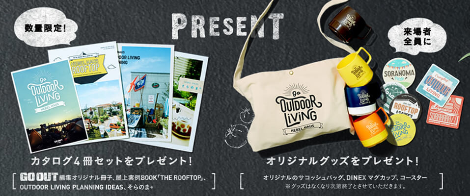 また、アウトドアリビングフェア中に、資料請求をして頂くとアウトドア雑誌GO OUT編集のカタログが無料で貰えちゃう🌟